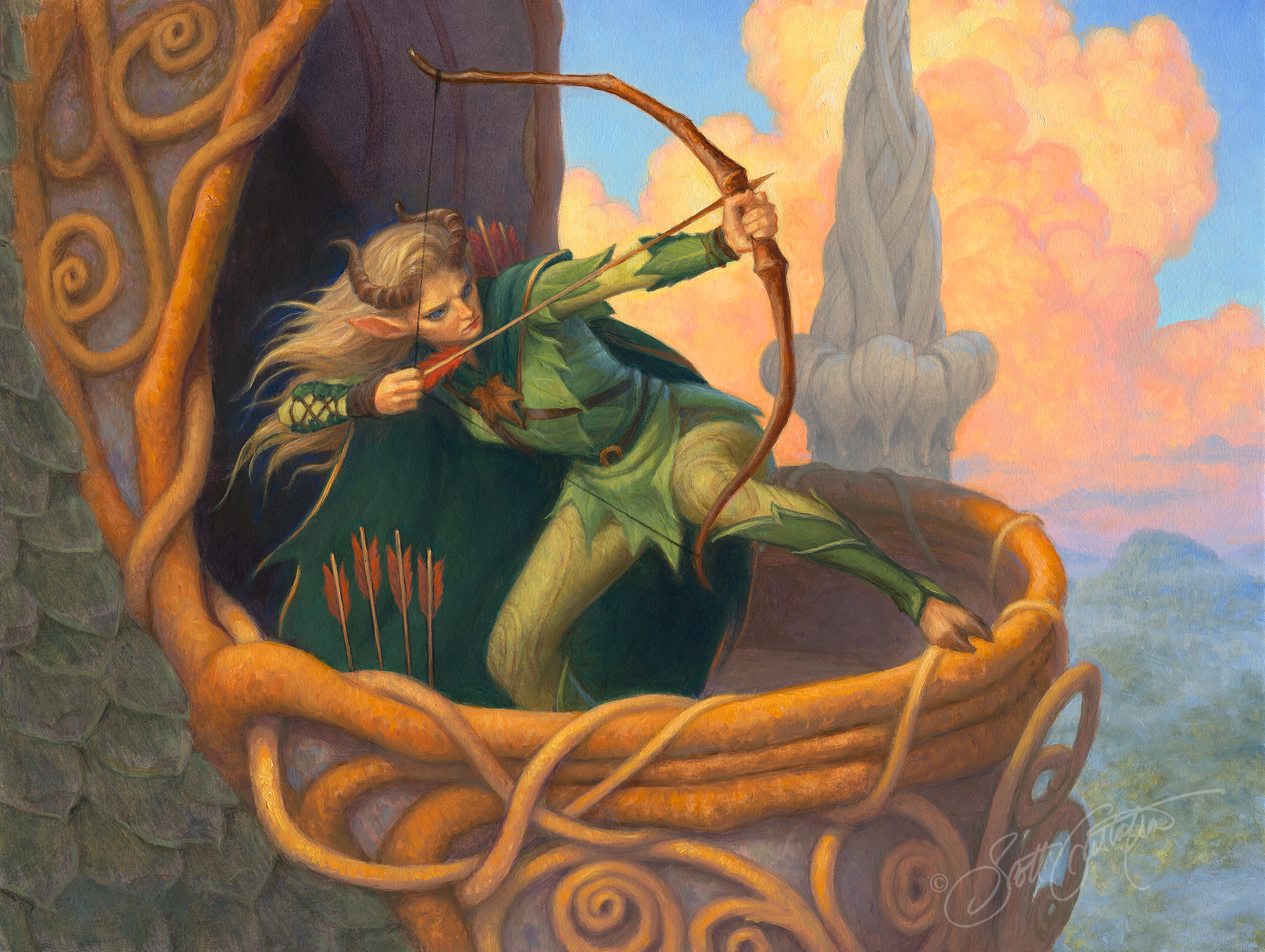 “Dawn’s Light Archer,” and “Tweeze,” © 2026, Wizards of the Coast LLC. All rights reserved. Artwork by Scott Gustafson. Please click on the images below to see size and price details.