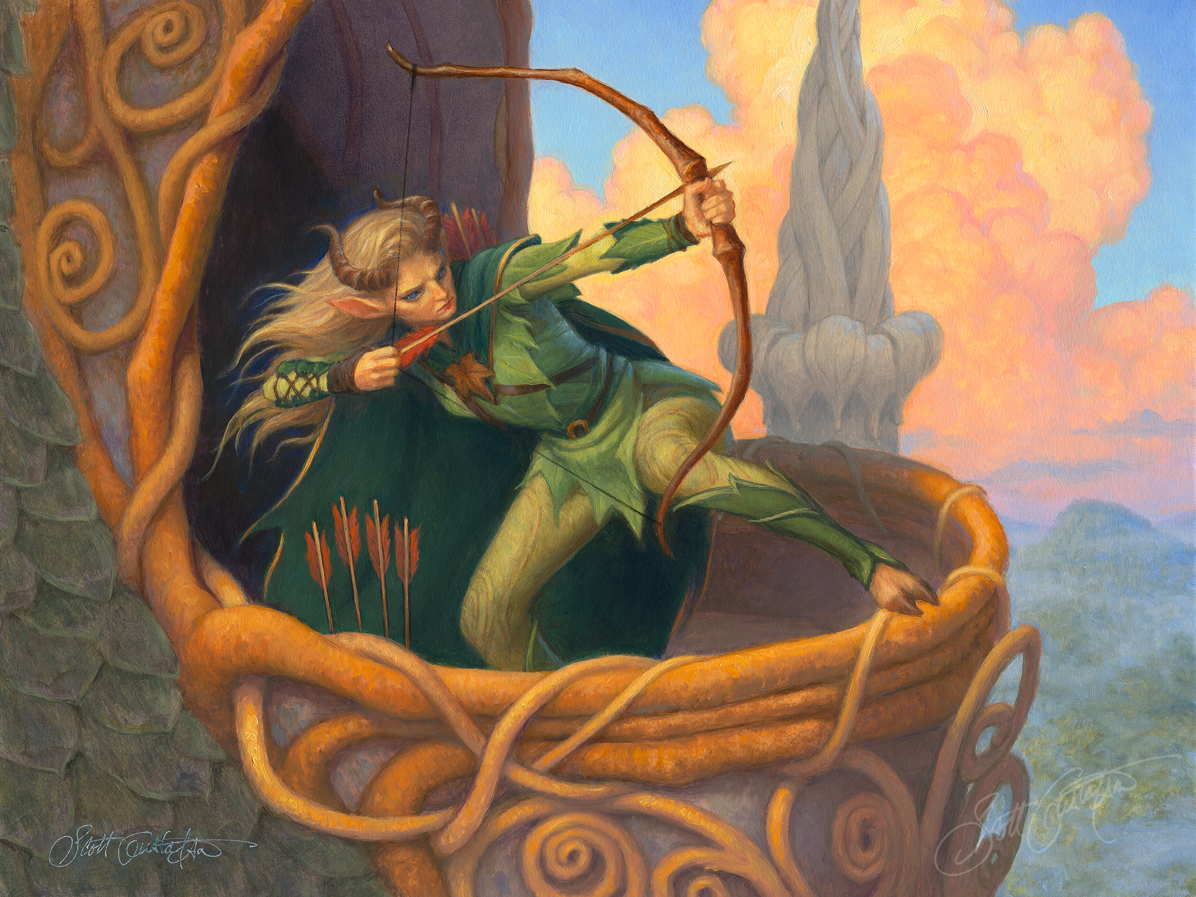 “Dawn’s Light Archer,” oil on panel, 16” x 12.” This original painting is now SOLD, but the Color Study, several original drawings and Studio prints are now available in 2 sizes.
