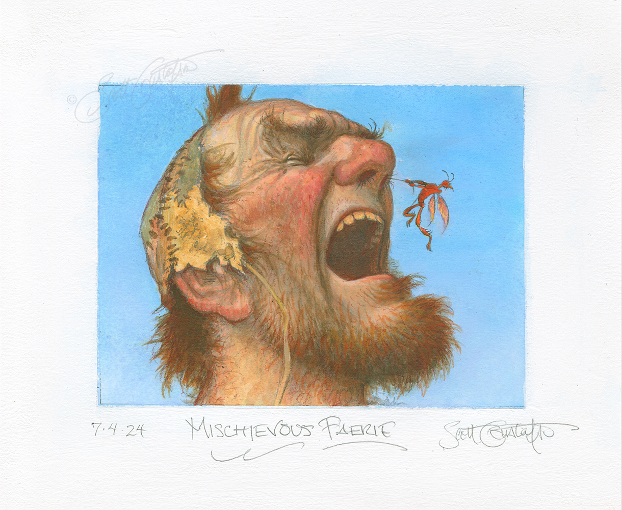 I'm pleased to share my new Magic the Gathering card from the recently released Lorwyn Eclipsed set! My working title was “Mischievous Faerie,” but it also could be called “OUCH”!